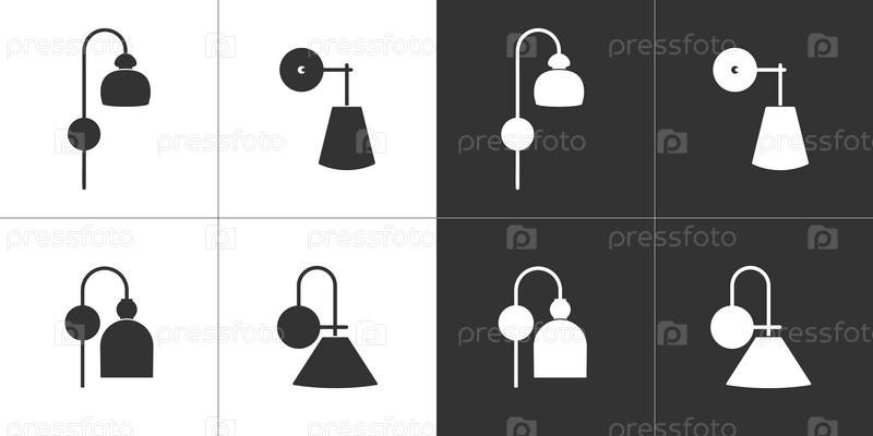 Настенные лампы. Черные и белые плоские иконки