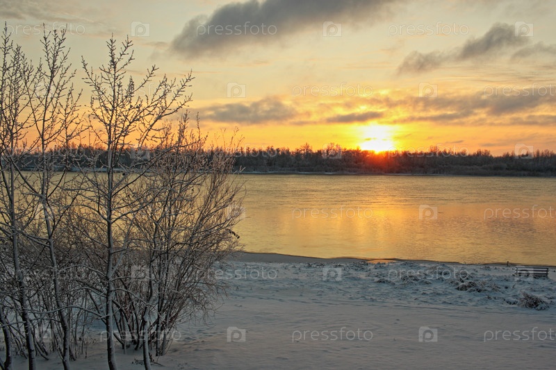 Вид на реку Иртыш в Омской области поздней осенью