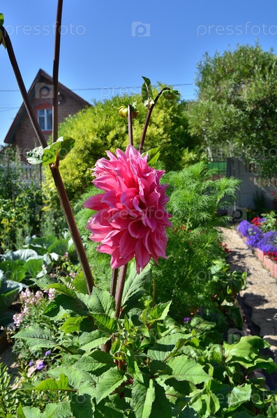 Цветущий георгин на даче в Омской области