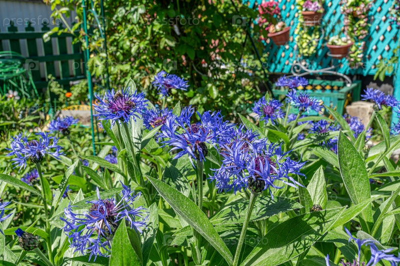 Цветущие васильки на клумбе