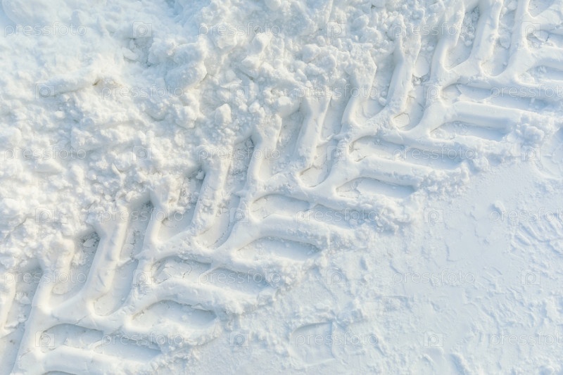 Тракторные следы на снегу, вид сверху
