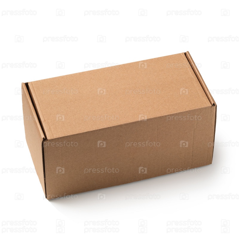 Закрытая картонная коробка прямоугольной формы, изолированная на белом фоне