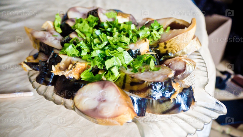 Скумбрия в блюде с зеленью
