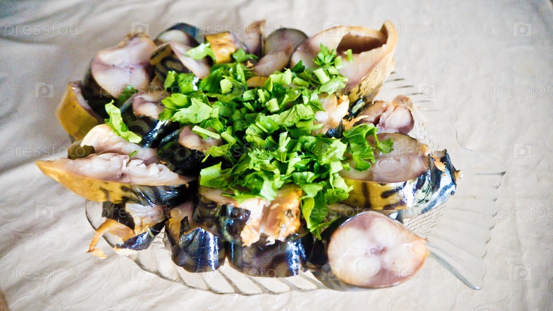 Скумбрия в блюде с зеленью