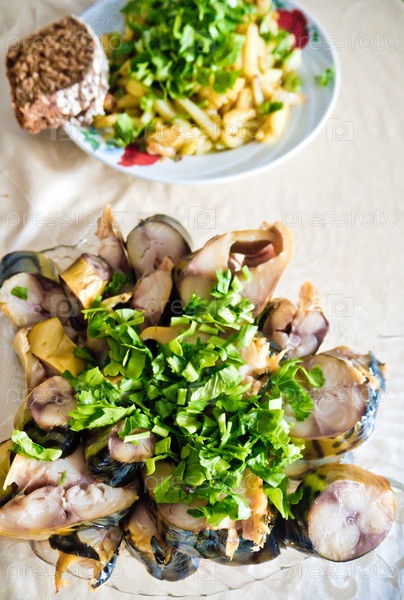 Скумбрия в блюде с зеленью
