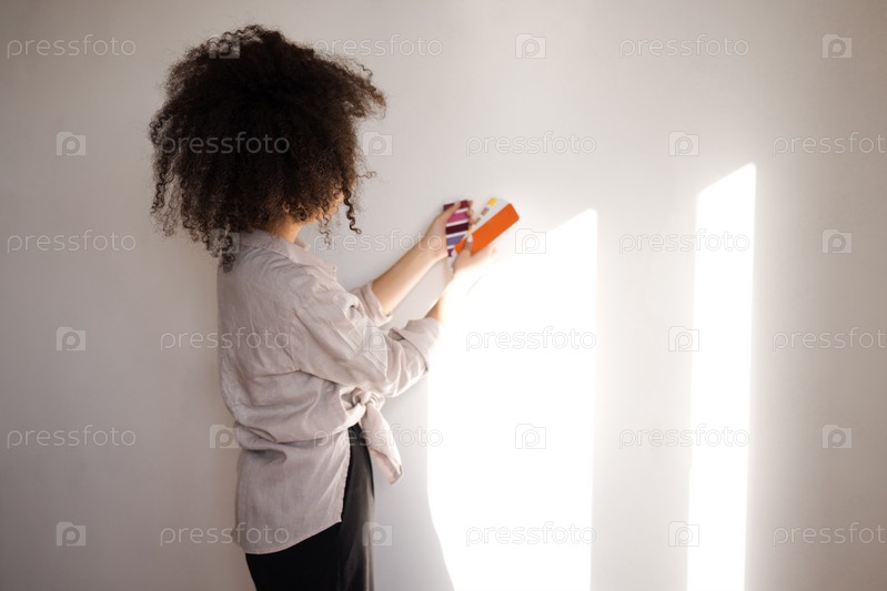 Африканская женщина в повседневной одежде держит цветовые палитры