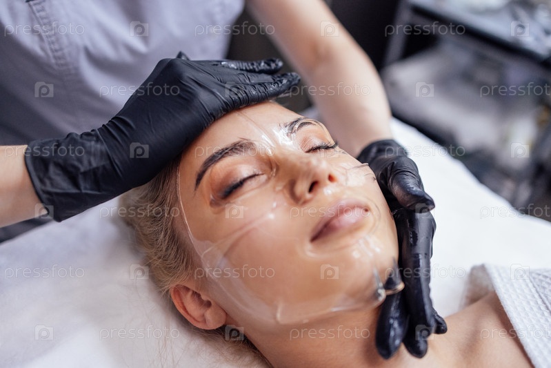 Блондинка красивая девушка проходит процедуру увлажнения кожи