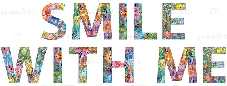 Ручная роспись художественного дизайна. Нарисованные от руки слова УЛЫБАЙТЕСЬ СО МНОЙ для футболки и других украшений