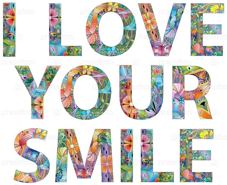 Ручная роспись художественного дизайна. Нарисованные от руки иллюстрации слова «Я ЛЮБЛЮ ВАШУ УЛЫБКУ» для футболки и других украшений