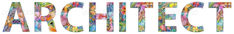 Ручная роспись художественного дизайна. Нарисованное вручную иллюстрационное слово АРХИТЕКТОР для футболки и других украшений