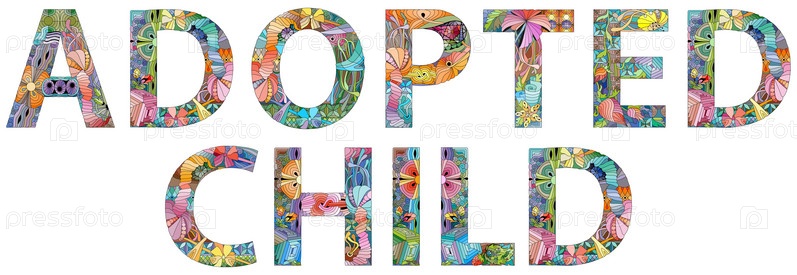 Ручная роспись художественного дизайна. Нарисованное вручную иллюстрационное слово ПРИЕМНЫЙ РЕБЕНОК для футболки и других украшений