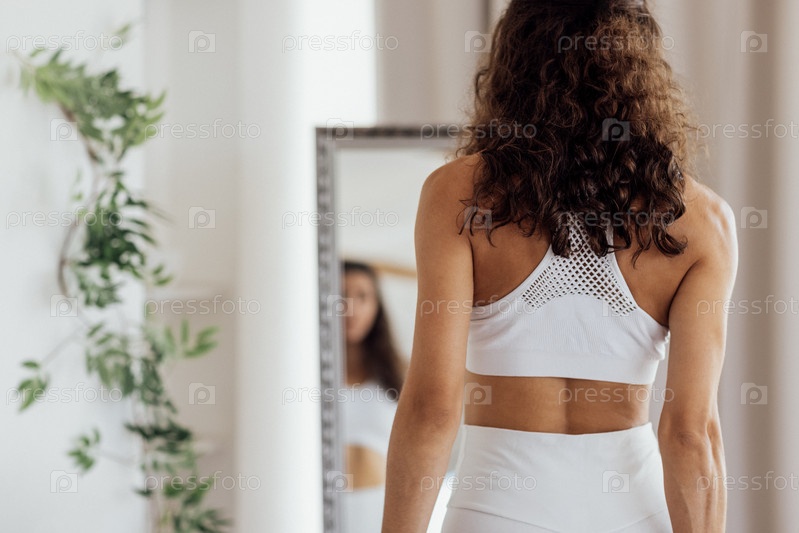 Счастливая молодая женщина в белом фитнес-костюме наслаждается утренней растяжкой