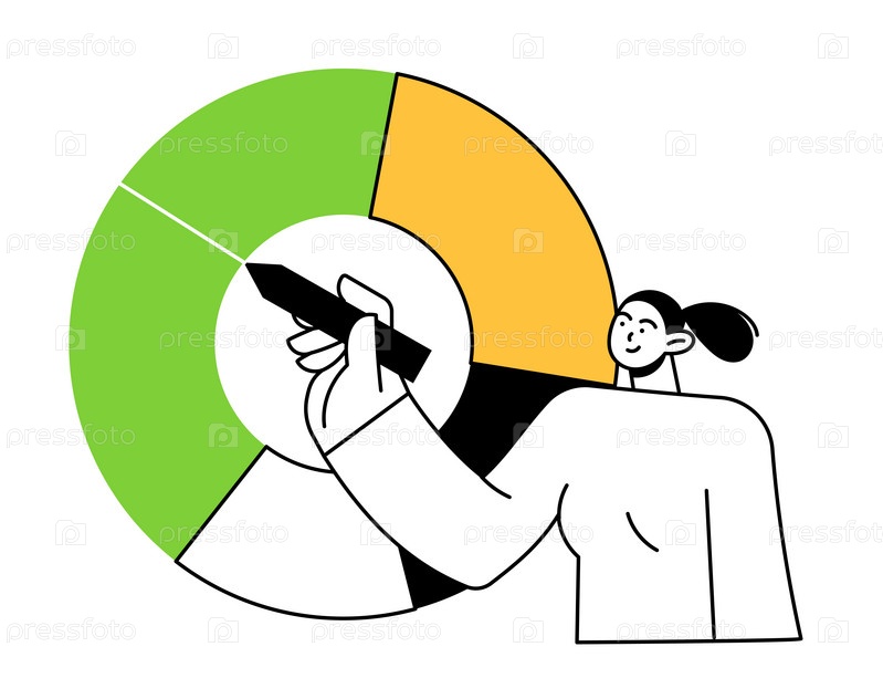 Женщина держит ручку и рисует диаграмму