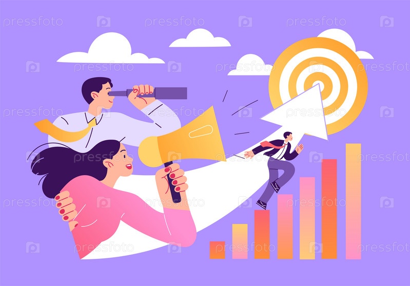 Видение и перспективы бизнеса. Бизнесмен бежит к более высокой цели. Стремление к успеху
