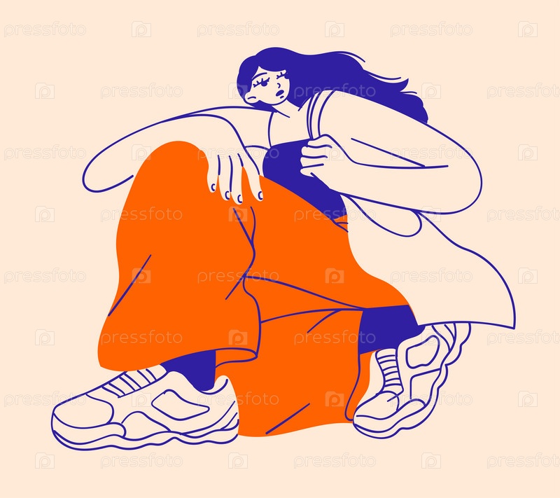 Модная модная сидящая женщина с нестандартными пропорциями тела в мешковатой одежде