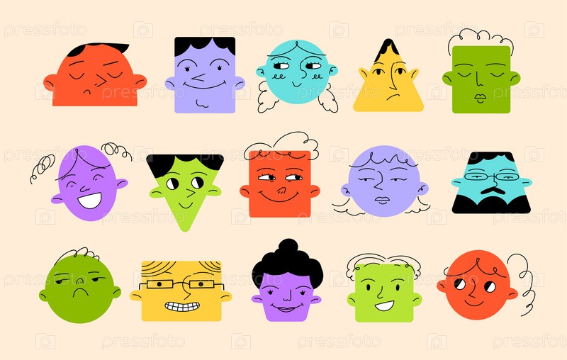 Различные эмоции и лица в геометрических формах