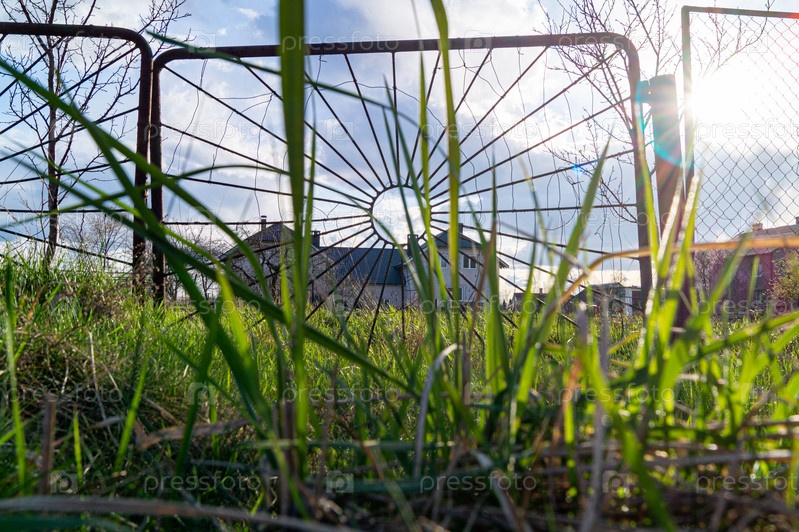 Участок за забором на фоне заката