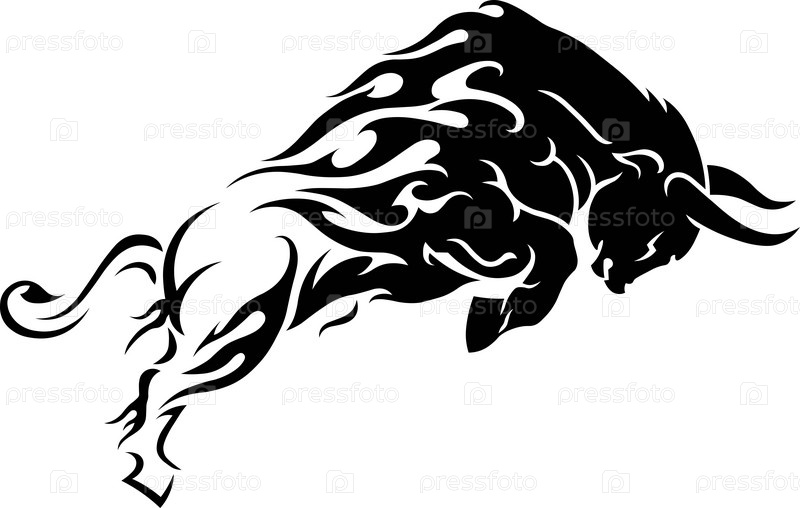 Эскиз трайбл татуировки бык скачет