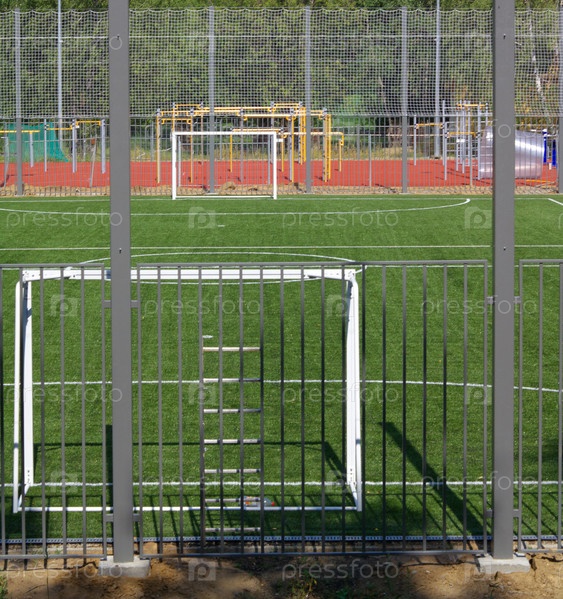 Футбольное поле возле забора в солнечный день