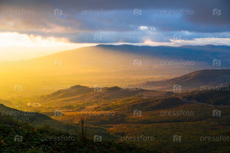 Горные вершины освещены лучами заката