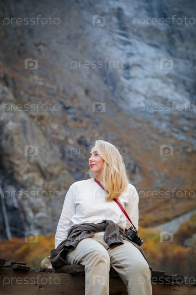 Естественное уединение: Девушка на мосту у водопада в горах