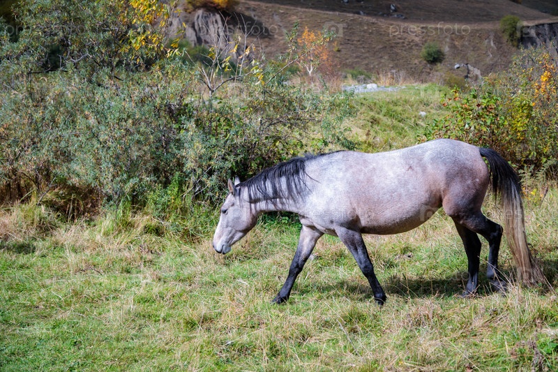 Величественная лошадь наслаждается свободой в горном ландшафте