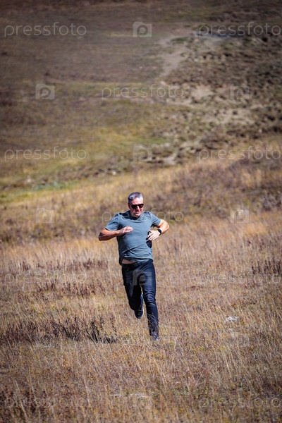 Спортивный мужчина активно спускается с горы, ощущая адреналин и свободу передвижения