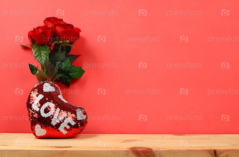 Концепция ко Дню святого Валентина или Женскому дню, Дню матери, баннеру. Поздравительная открытка, розы, сердца и подарочные коробки на красном фоне, с праздником, поздравления с днем рождения, выборочный фокус