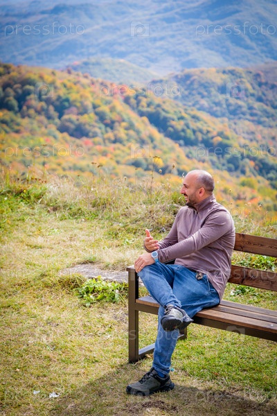 Мужчина мирно сидит, находя утешение в безмятежном и захватывающем дух виде священной горной вершины и ее величественного природного ландшафта, создающего идеальные условия для медитации и спокойствия