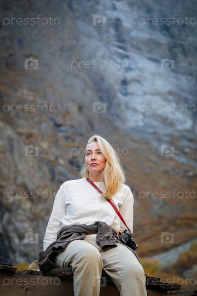 Естественное уединение: Девушка на мосту у водопада в горах
