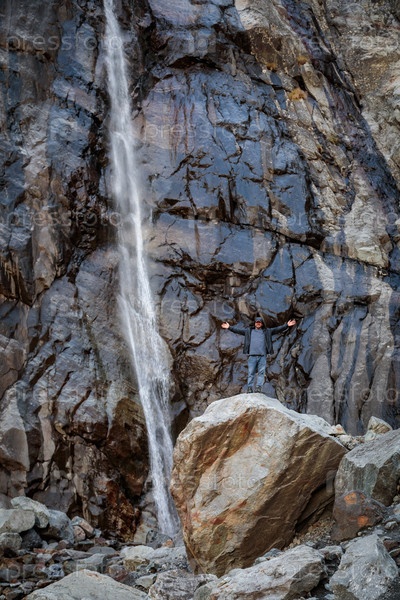 Сила и красота: Мужчина у горного водопада