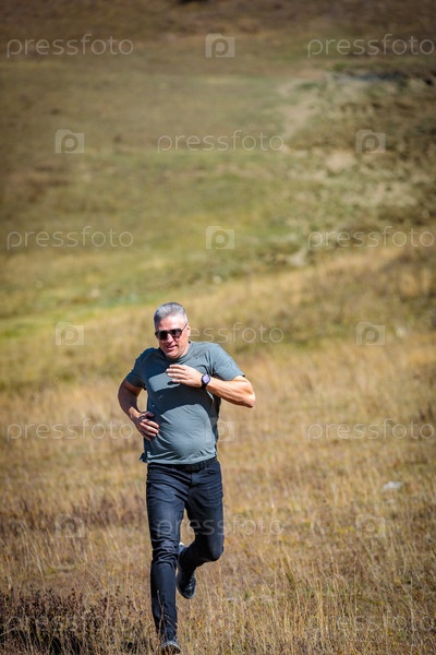 Мужчина бежит с горы