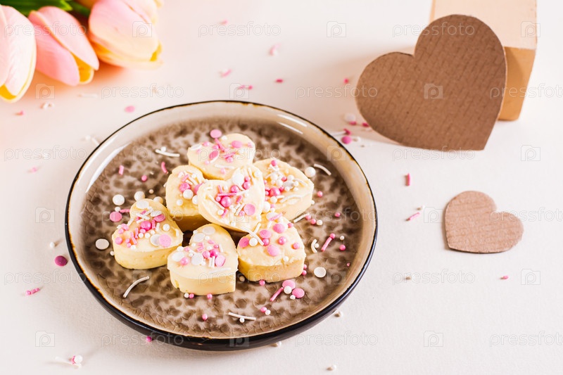 Домашние конфеты из белого шоколада с глазурью на тарелке на столе