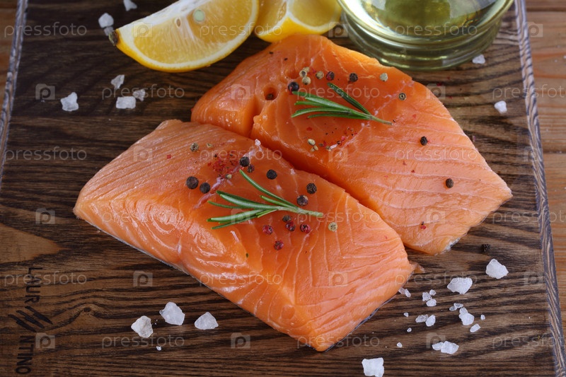 Филе семги на деревянном фоне
