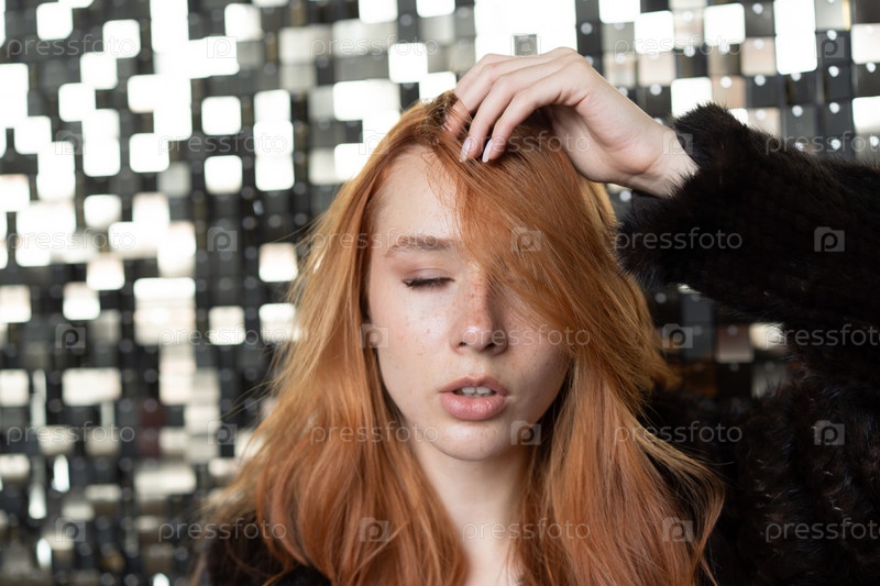 Портрет молодой красивой женщины с рыжими волосами в студии