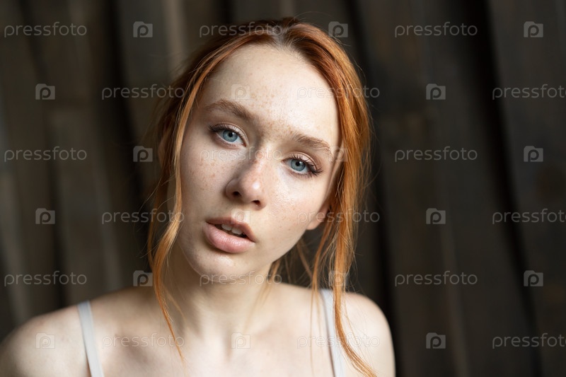 Портрет молодой красивой женщины с рыжими волосами в студии