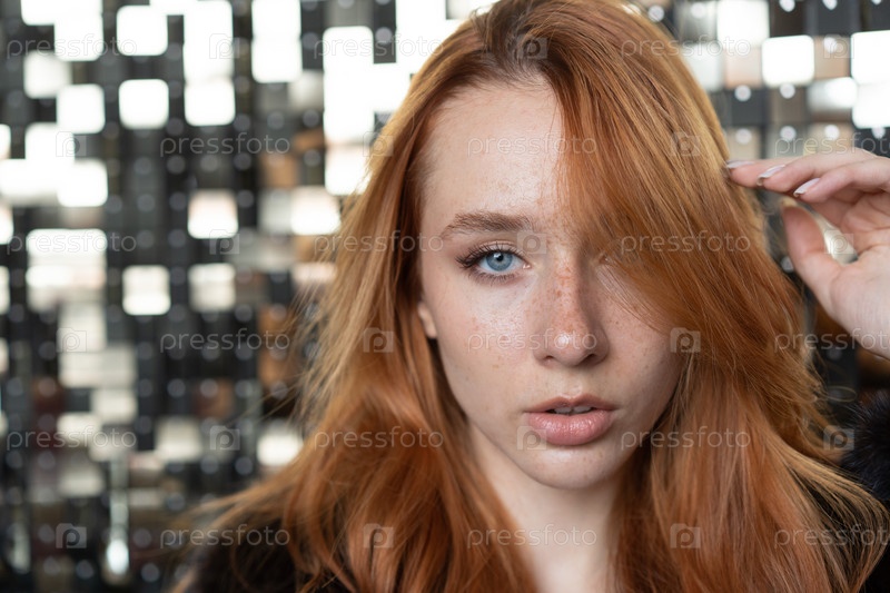 Портрет молодой красивой женщины с рыжими волосами в студии
