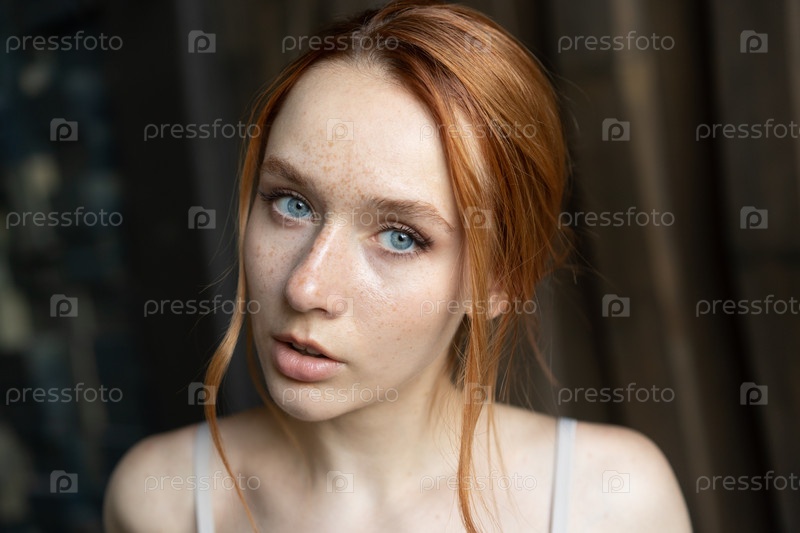 Портрет молодой красивой женщины с рыжими волосами в студии