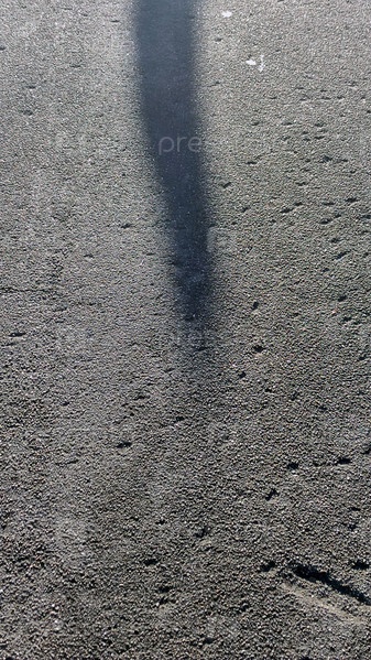Длинная тень на тротуаре. Осенний вечер, низкое солнце освещает все вокруг, мужчина на скутере отбрасывает длинную узкую тень на серое ровное дорожное покрытие