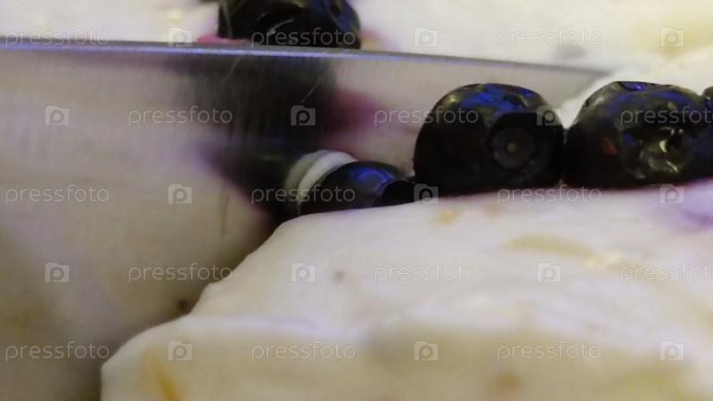 Белый торт режет нож