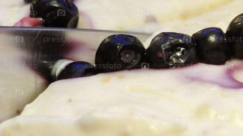 Белый торт режет нож