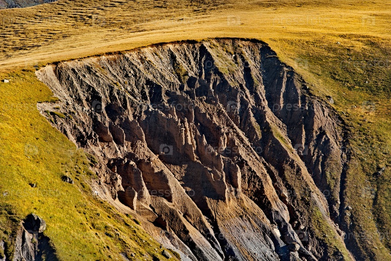 Россия, Северный Кавказ. Вид на удивительные осыпающие пикообразные образования осадочных пород у подножья Эльбруса
