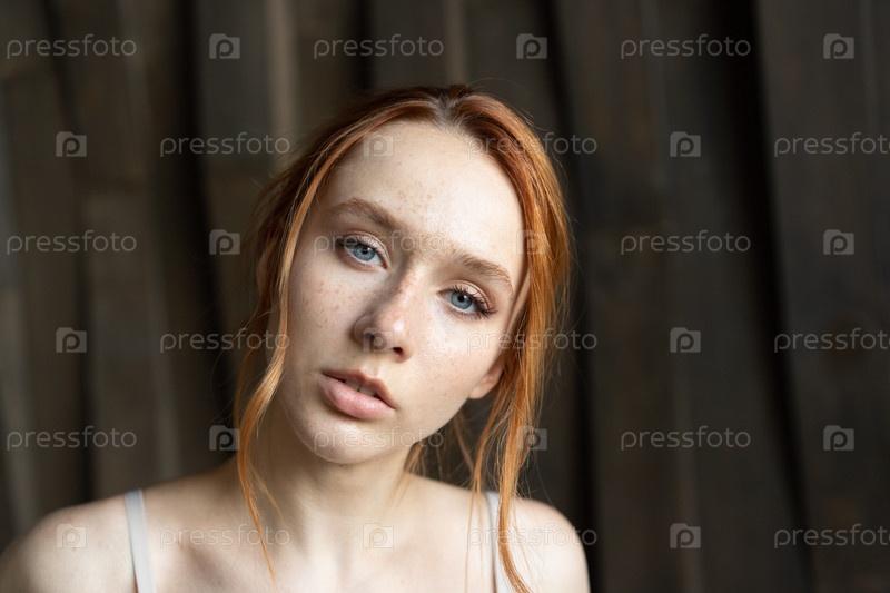 Портрет молодой красивой женщины с рыжими волосами в студии