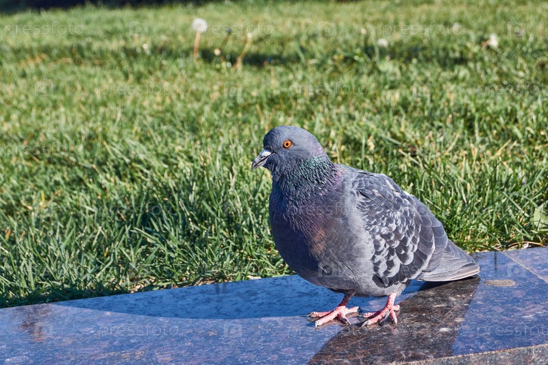 Голубь на лужайке городской площади