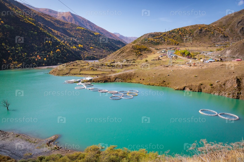 Захватывающий вид на горы с потрясающим голубым водоемом и зеленой листвой
