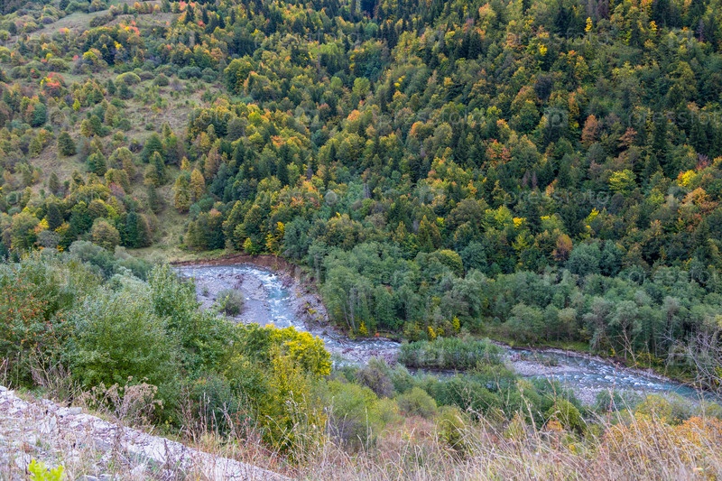 Горная река с высоты гор