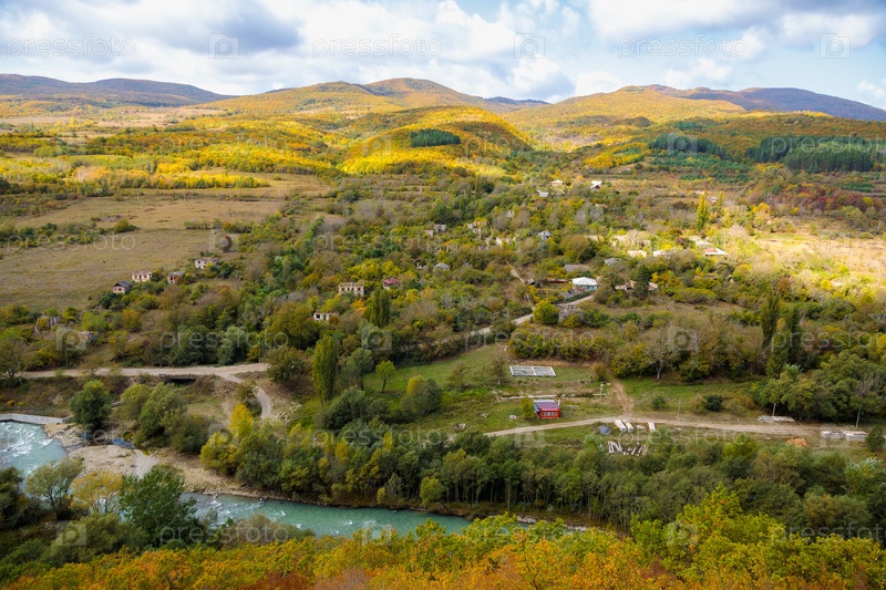 Вид на горную реку с высоты гор
