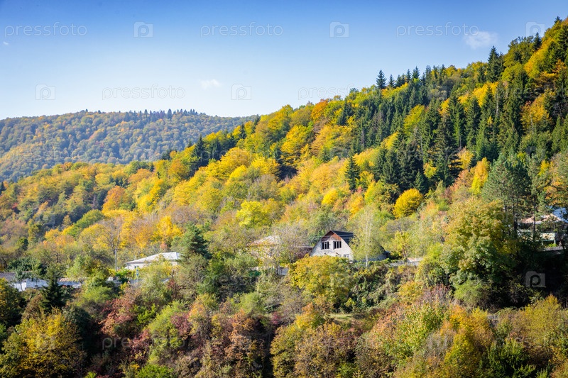 Пышный осенний пейзаж гор Осетии