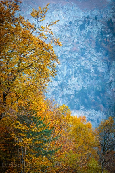 Золотые осенние деревья в горах