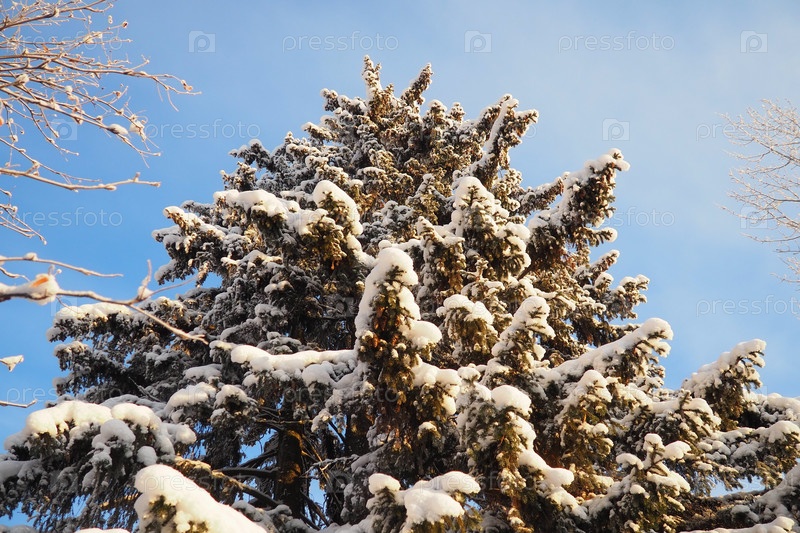 El Picea сосновая вечнозеленая древесина из семейства Сосовых. Вечнозеленые деревья. Обычная ёлка, или обыкновенная ёлка Picea abies, широко распространена в Северной Европе. Снежная зима хвойный лес